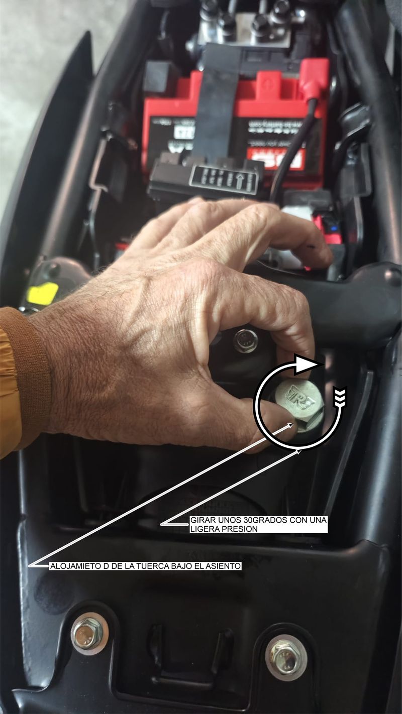 Esta tuerca viene como accesorio colocada bajo el asiento y sirve para desmontar la rueda delantera, concretamente se aloja en su eje, el problema viene por que va vibrando en su alojamiento que hay bajo el asiento y en ocasiones sale de el mismo pudiendo provocar daños en algun conector o batería dado que es pesada, la solución que he encontrado es colocar una arandela de goma (según la imagen) que ofrecerá la posibilidad de colocar el accesorio de forma que no se mueva, para ello giraremos la tuerca unos 30 grados en cualquiera de los dos sentido ejerciendo una ligera presión, esta arandela la puedes encontrar el kits de arandelas de goma que venden en Lidl adjunto enlace de su web: https://www.lidl.es/es/surtido-de-junta ... ageSize=24